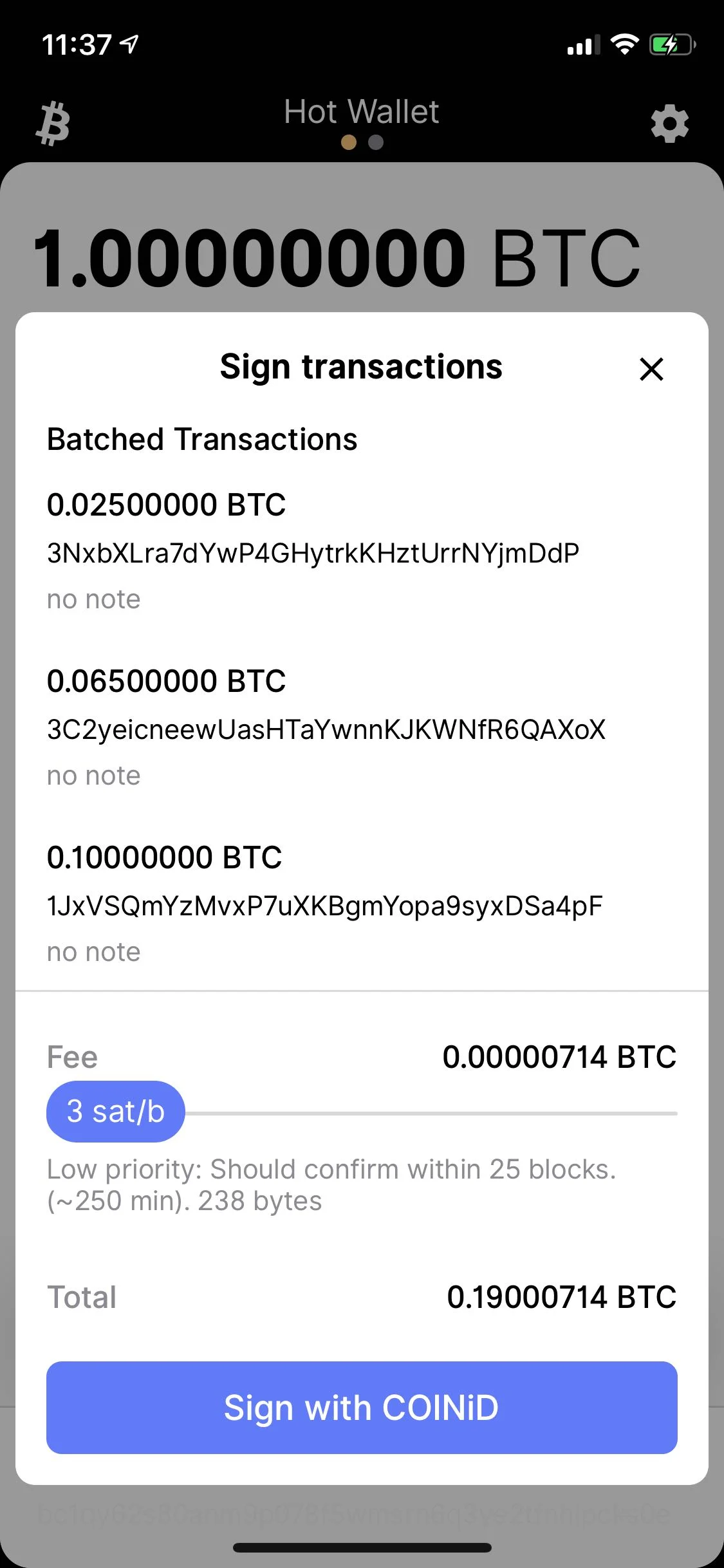 Nevertheless, as we mentioned before it is human nature to minimize extra costs. Just like with our cold storage solution, where we wanted to make it possible for everyone to store Bitcoin offline without expensive specialized hardware, we also thought about how we could make it cheaper for our users to trade their Bitcoins. At least, we wanted to give the users an option to pay lower fees while not having to wait for ages for their transaction to go through. That’s why we added the feature of transaction batching.